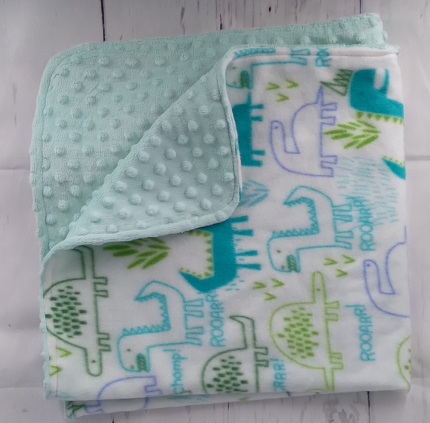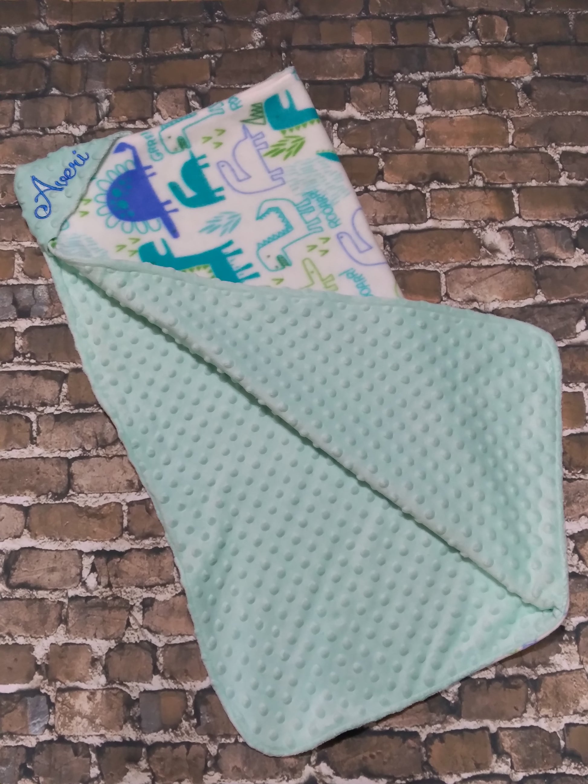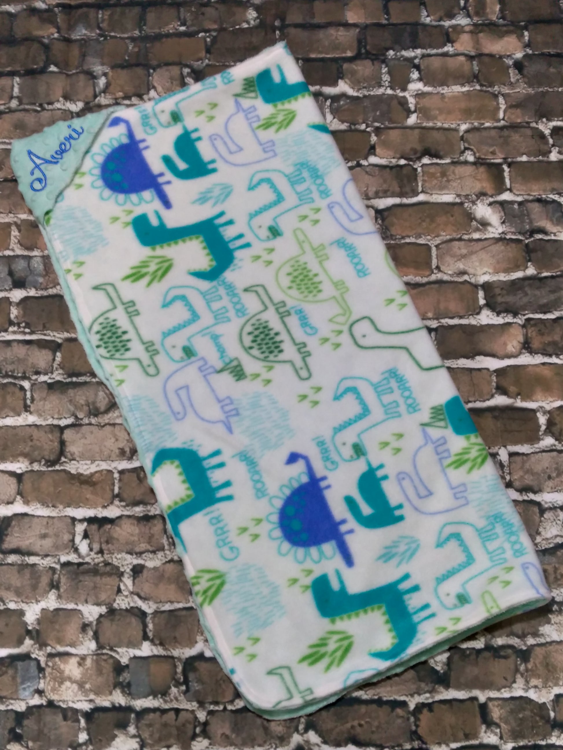 Embroidered Personalized Dino Themed Baby Receiving Blanket
