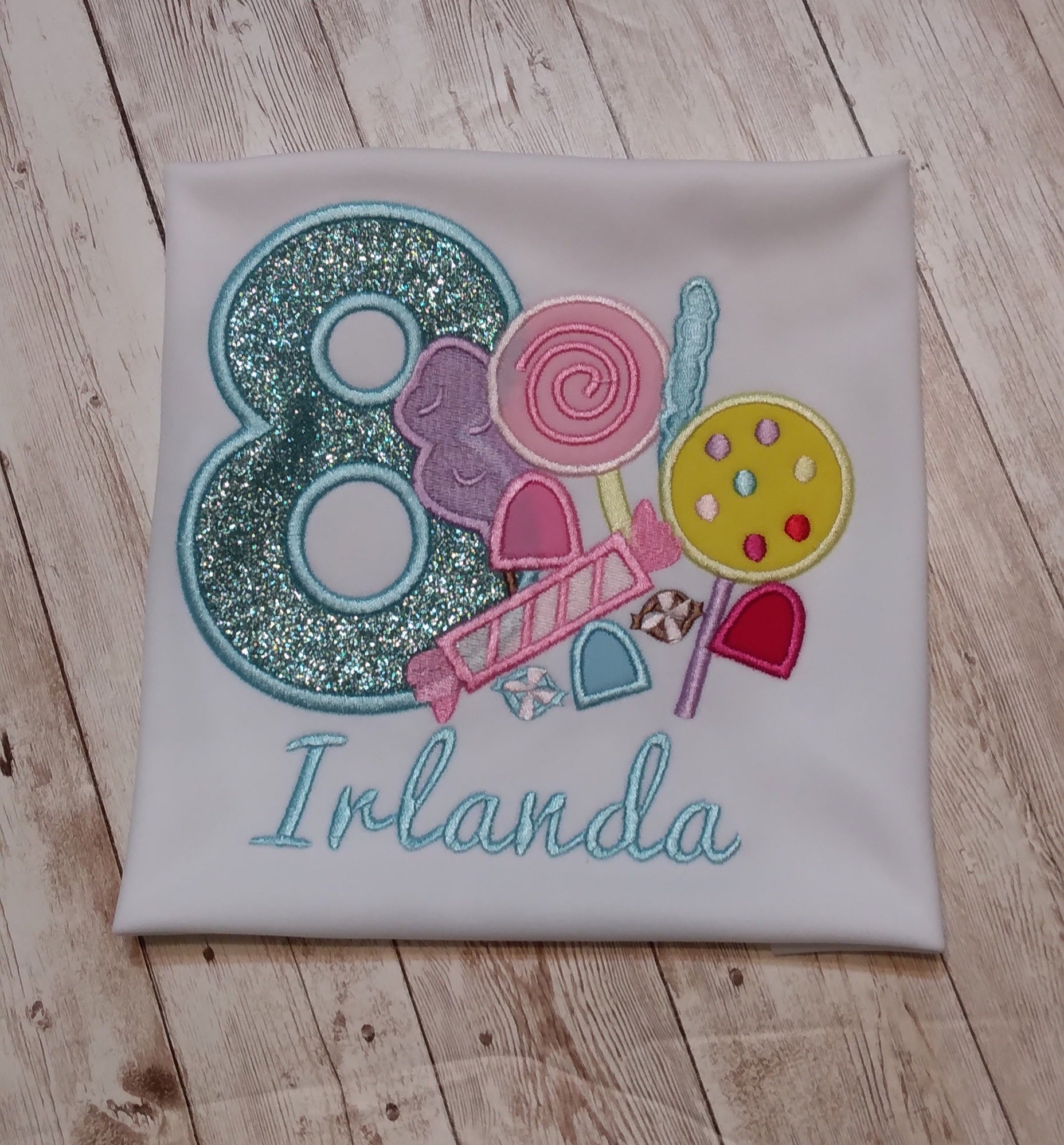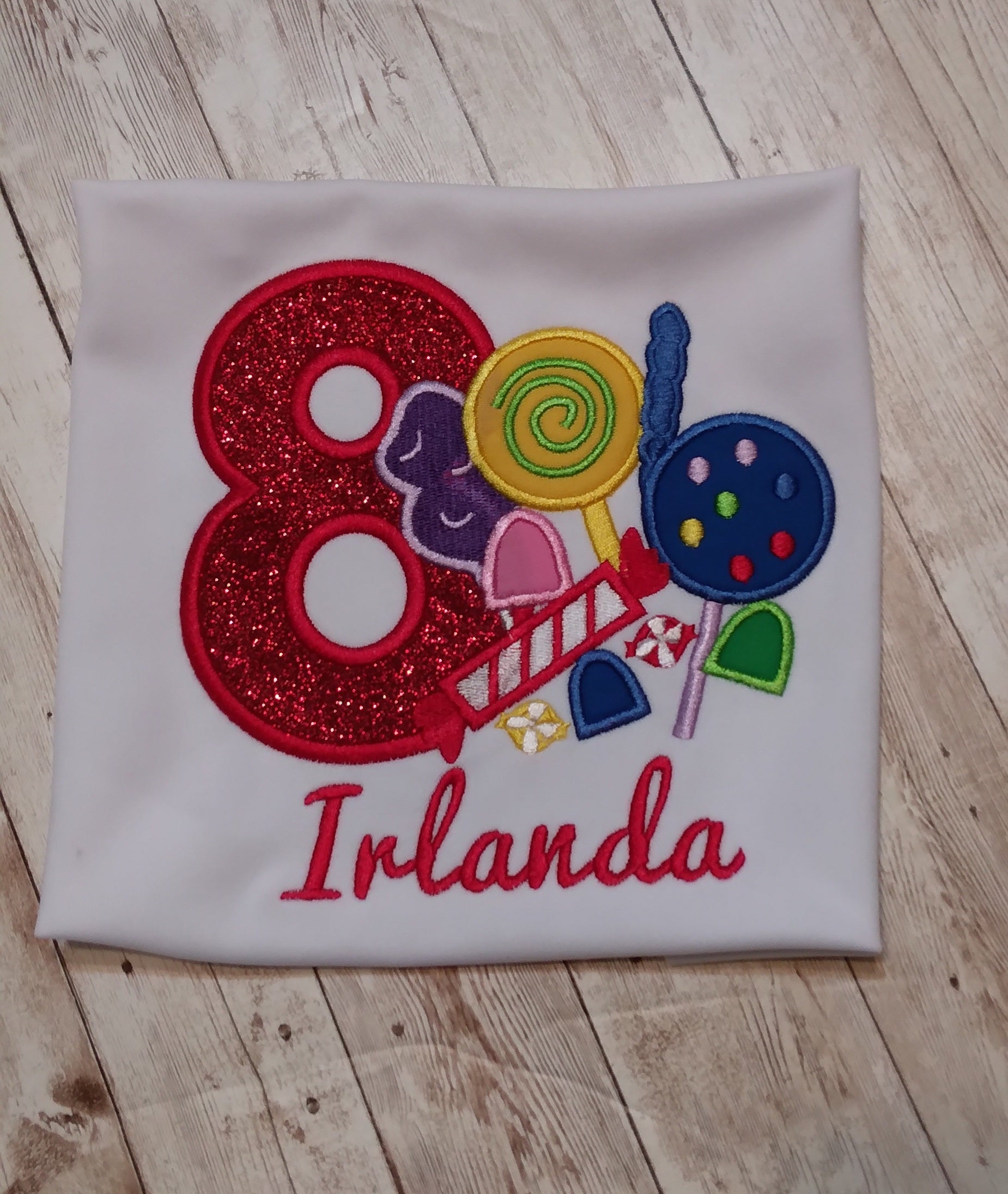 Embroidered Personalized Kid's Birthday Shirt. Colors and font can be changed to preference!